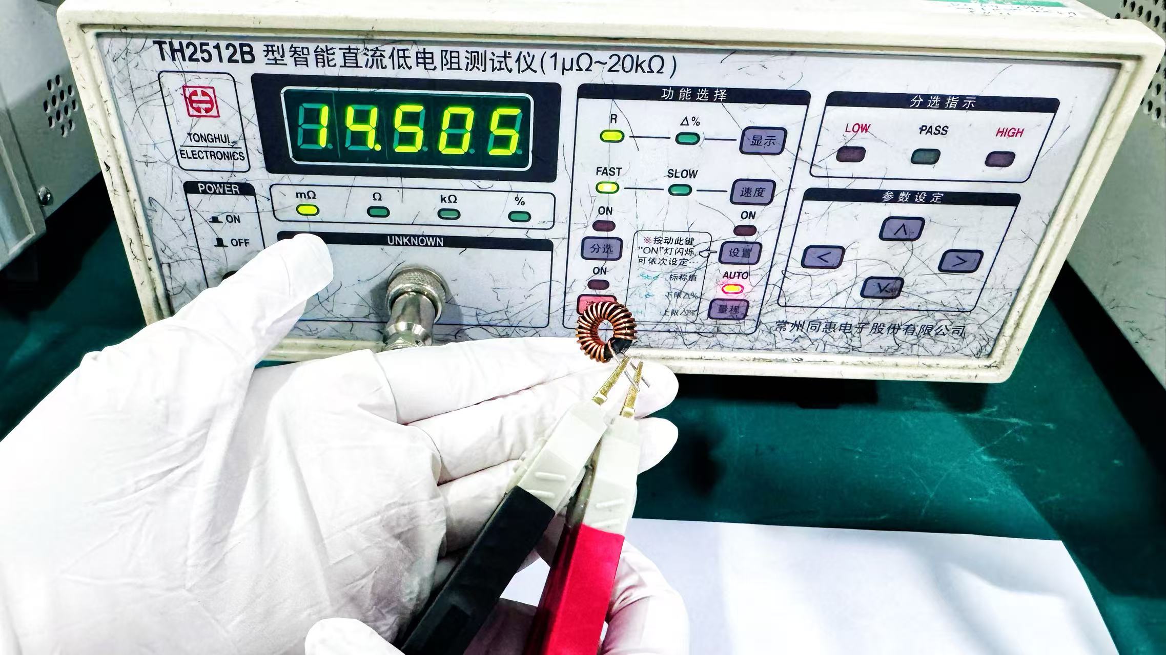 ? ? ? 在1kHz/0.3V測試條件下,直流電阻僅14.27-14.7mΩ,大幅降低導通損耗;